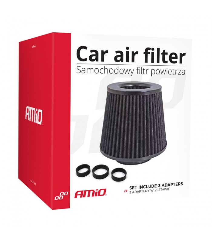 Automobilio oro kūginis filtras, juodas, universalus, 3 tvirtinimo adapteriai